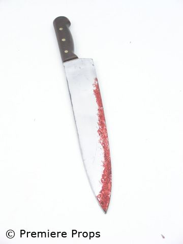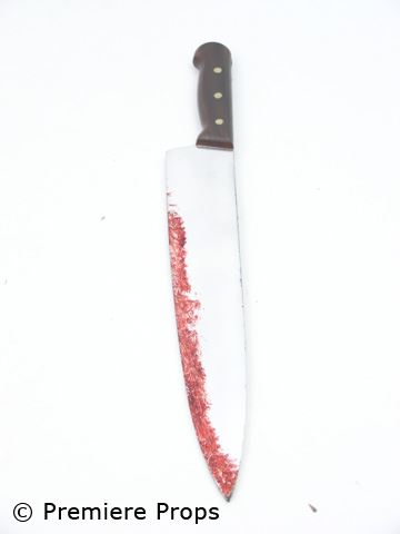 Straight out of the archives, this is Michael Myers (Tyler Mane) silver blade with brown handle rubber knife covered in dark red fake blood (*sticky from the blood) (Approx. 18 in long)