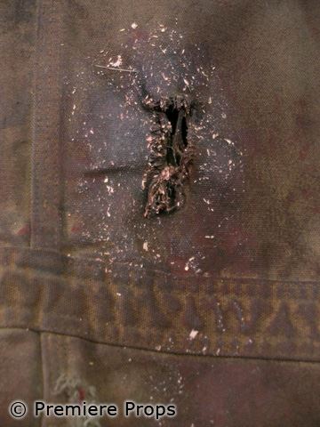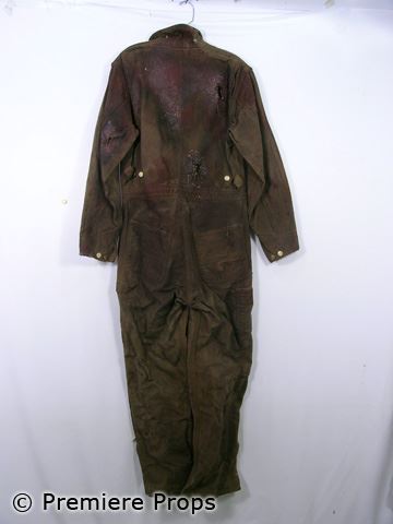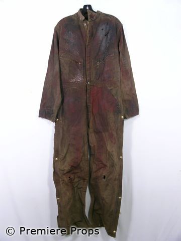 Straight out of the archives, this is Young Michael Myers (Chase Wright Vanek) dark khaki zip up with front zipper pockets "Carhart" coveralls (No size, tags removed) (screen worn) (VERY BLOODY, DIRTY, punctured in multiple places, used in final scene with farm machinery)