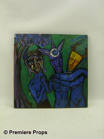 Halloween II - As seen in the horror thriller, Halloween II, this is a blue, green, yellow, and other colors horned creature painting used as set decoration. (approx. 18" x 18") A great prop from Halloween II. (2HLW2300)