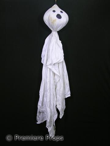 As seen in Rob Zombie's Halloween II, this is a screen used, dirty, white cloth with black eyes and mouth hanging ghost decoration used as set decoration. (Approx 4' long)