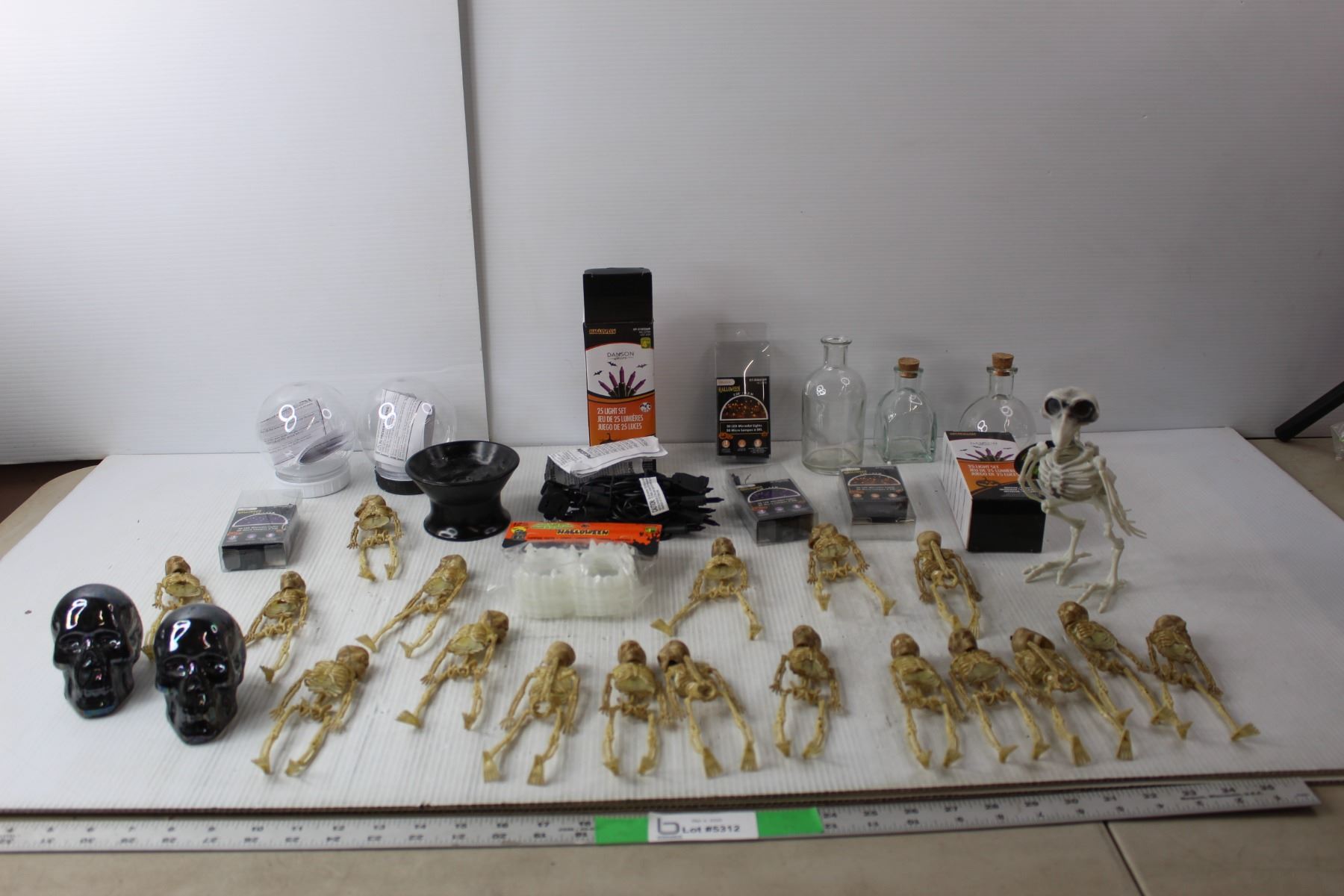 Halloween Lot- String Lights, Miniature Skeletons, Glow in the Dark Fangs, Misc.