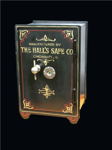 Halls Company, Cincinnati, OH. small safe. Restored condition with key. 14 1/2 X 9 1/2 X 8 1/2 inches.