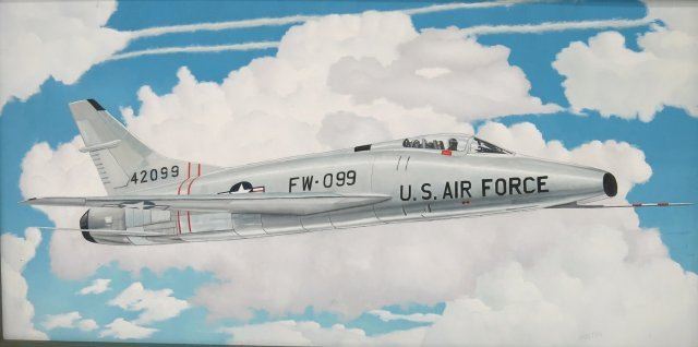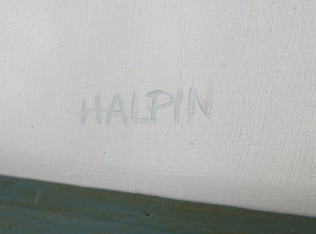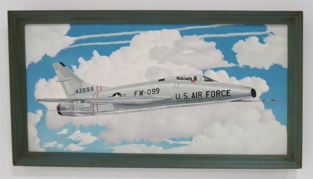 Oil on masonite. Approx. 27.5" H x 50.5" W with frame, 23" H x 46.5" W without frame. Good condition.