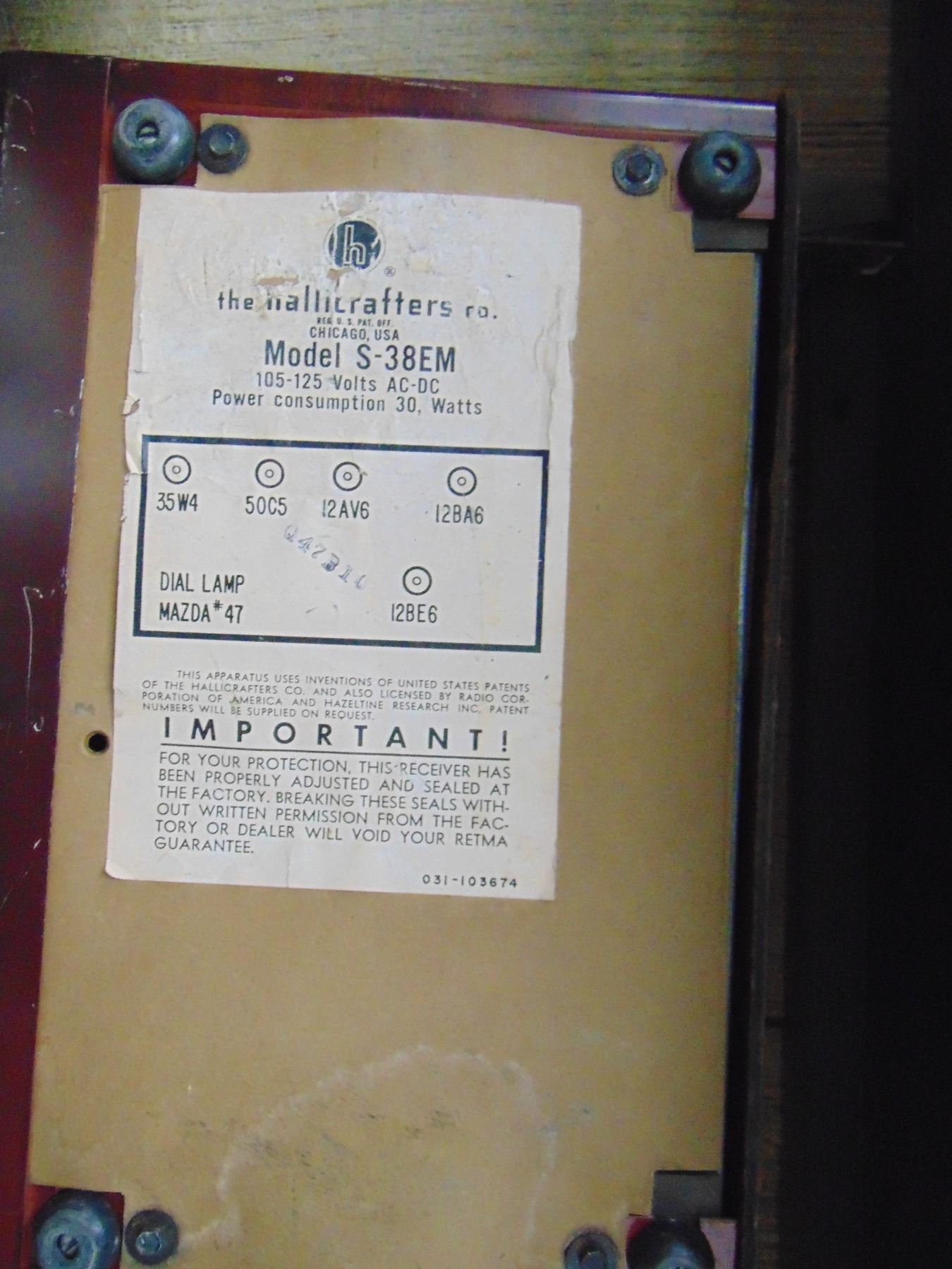 Hallicrafters receiver model S-38EM; brown wood grain finish cabinet