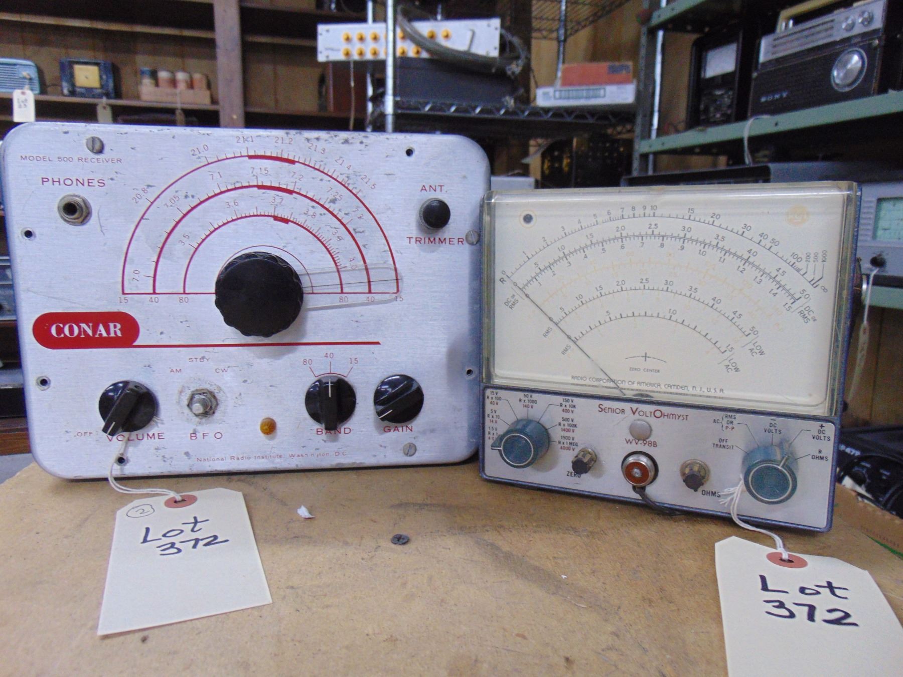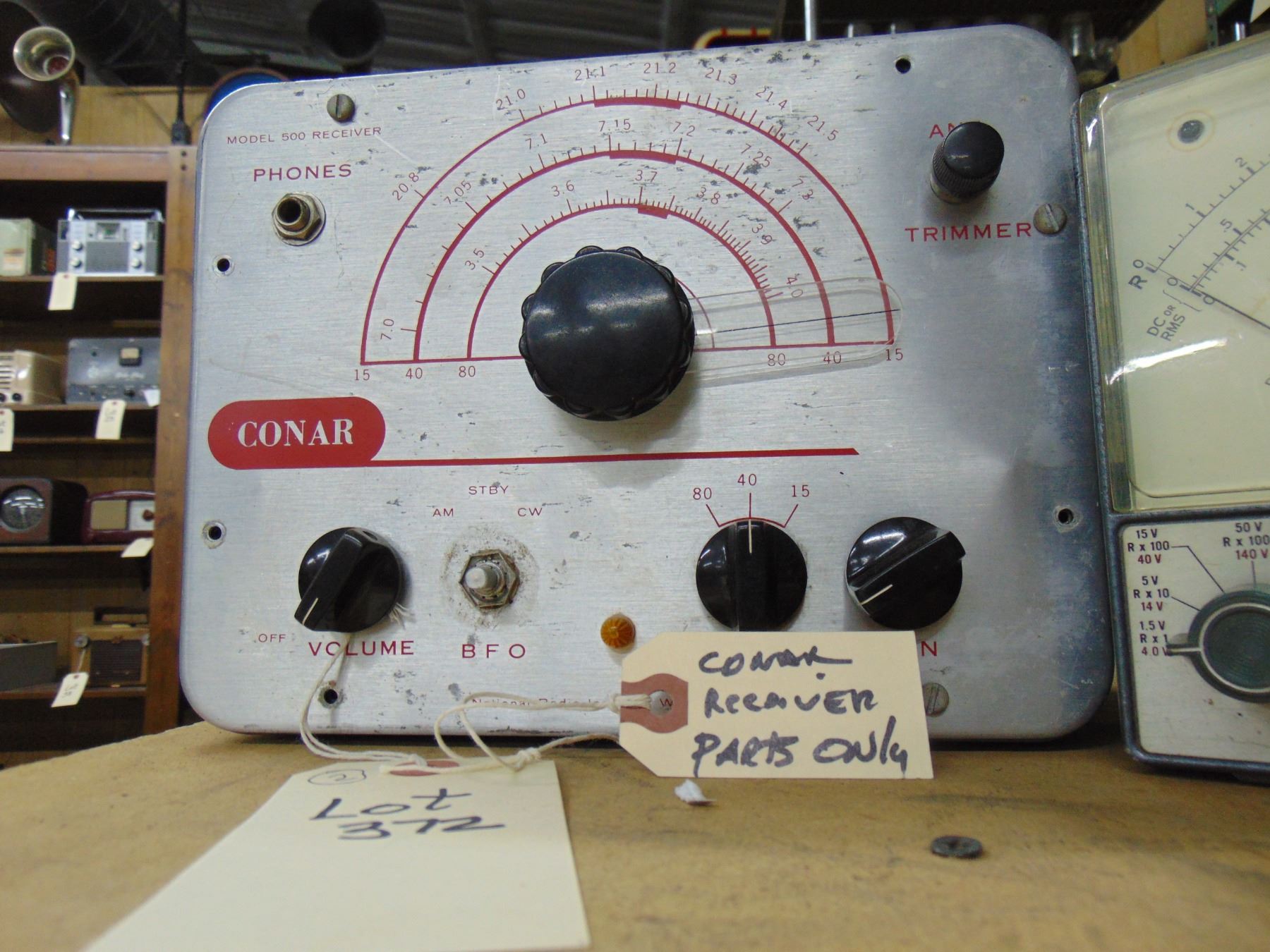 2 items; Conar receiver, model 500, for parts; RCA Senior voltOhmyst multi-meter