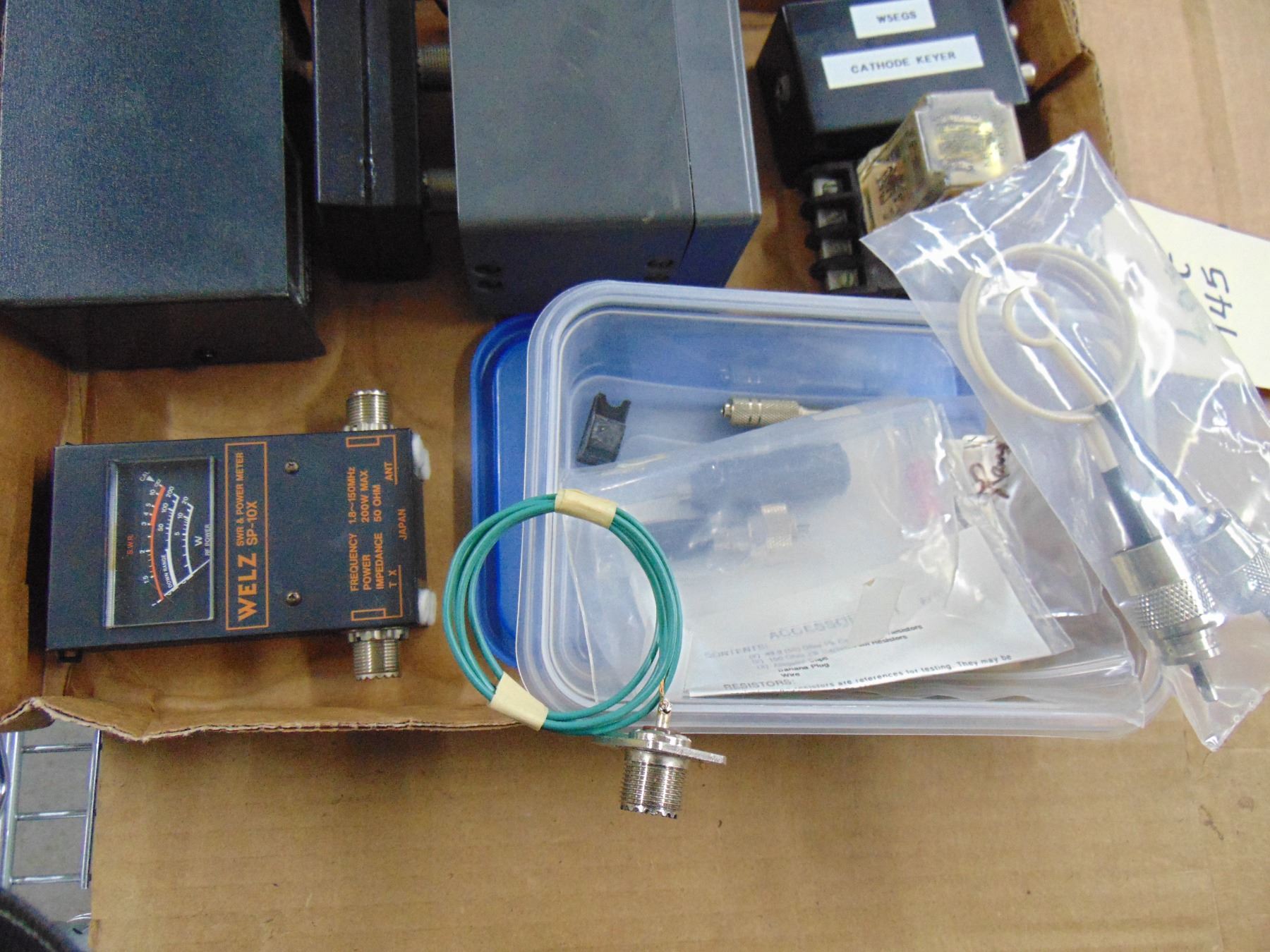Flat of misc. SWR meters and antenna supplies