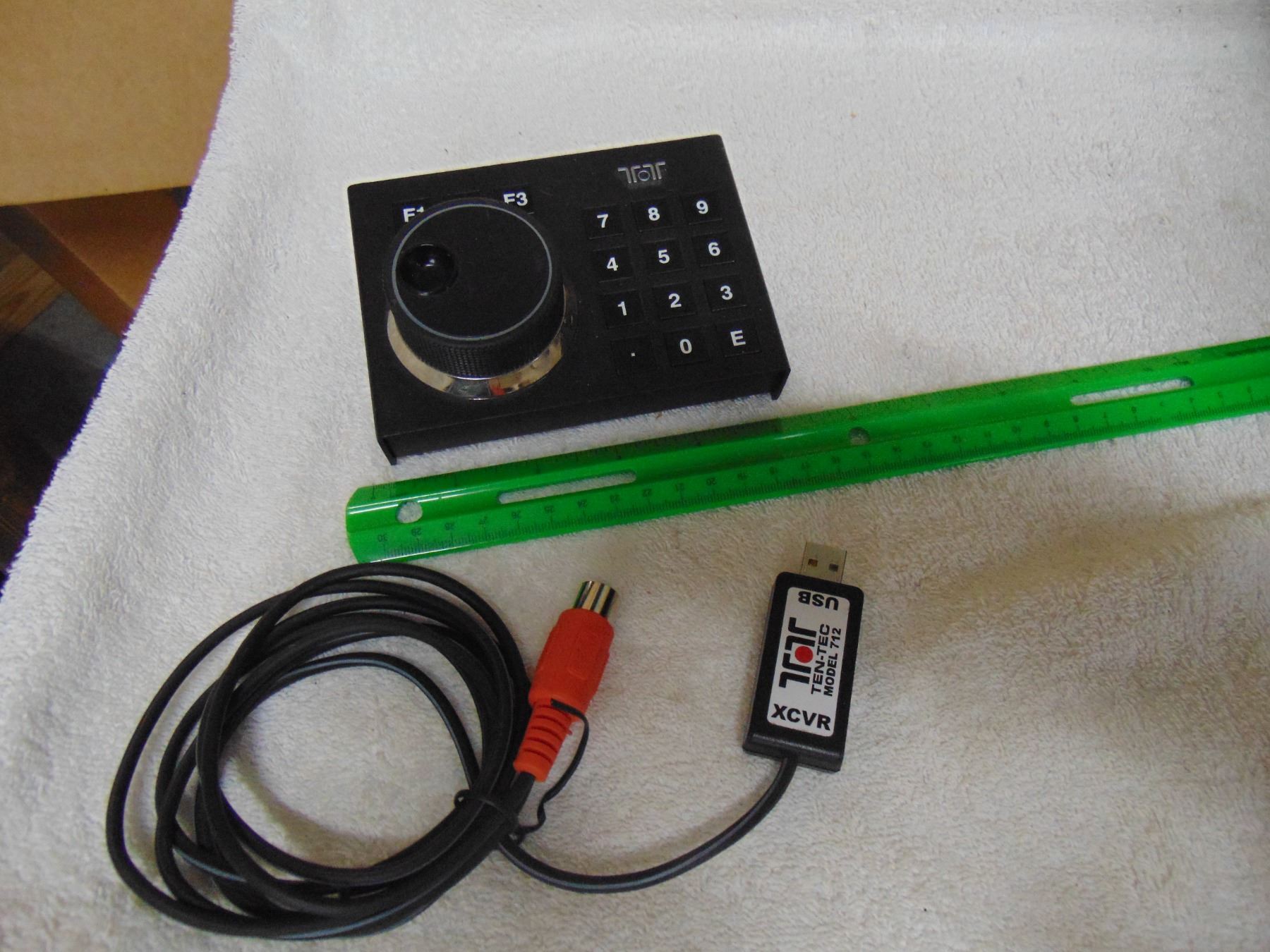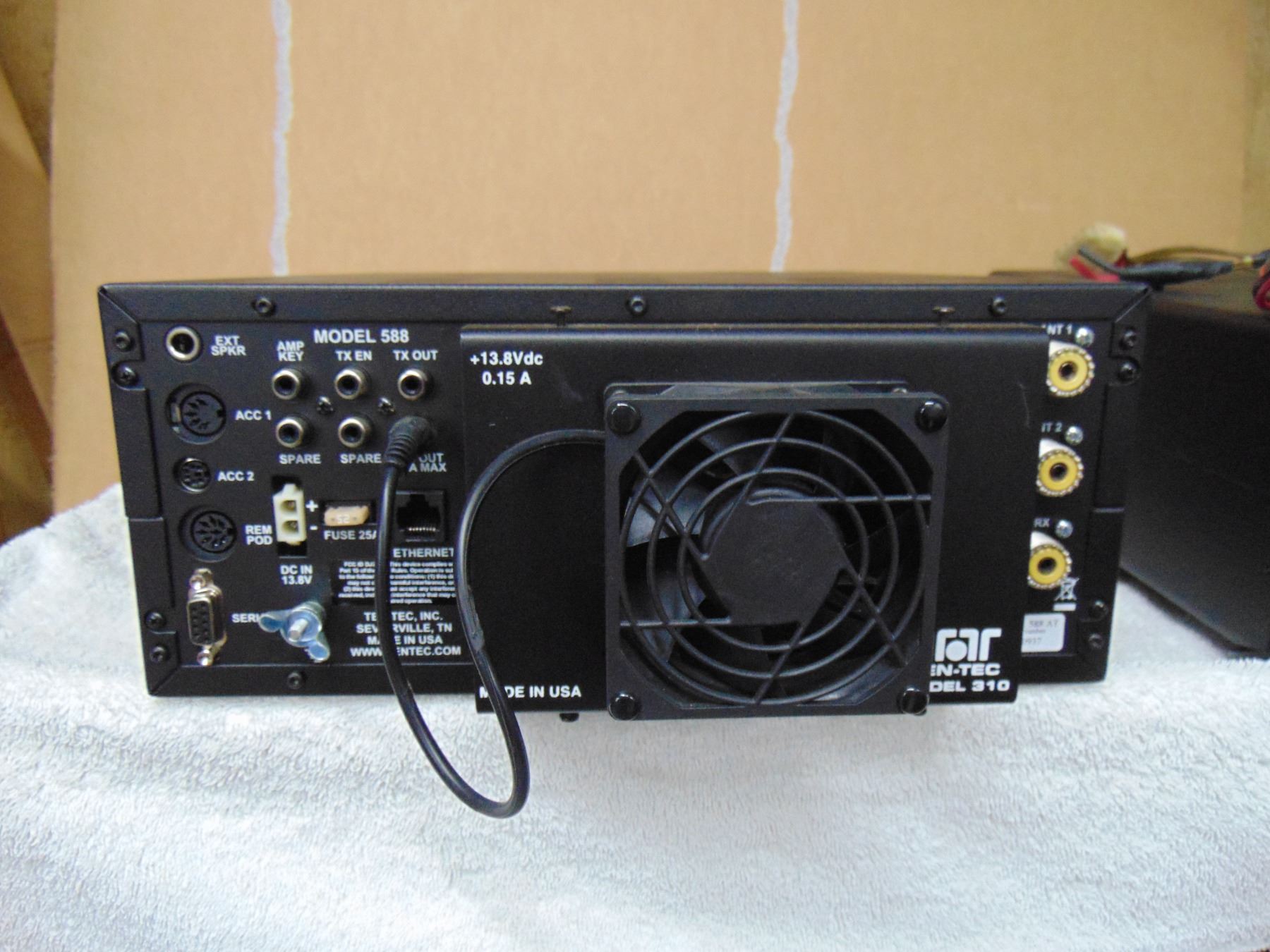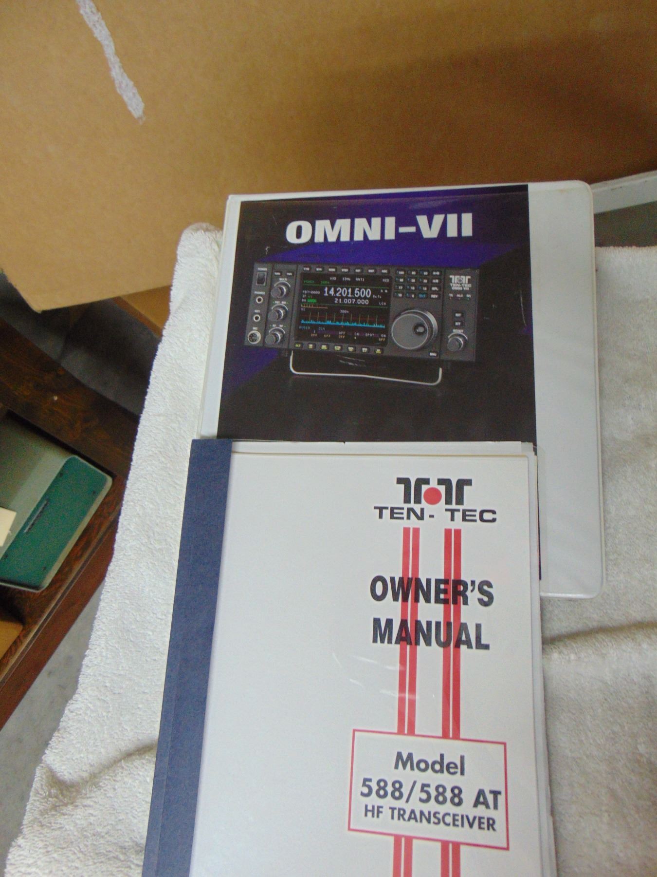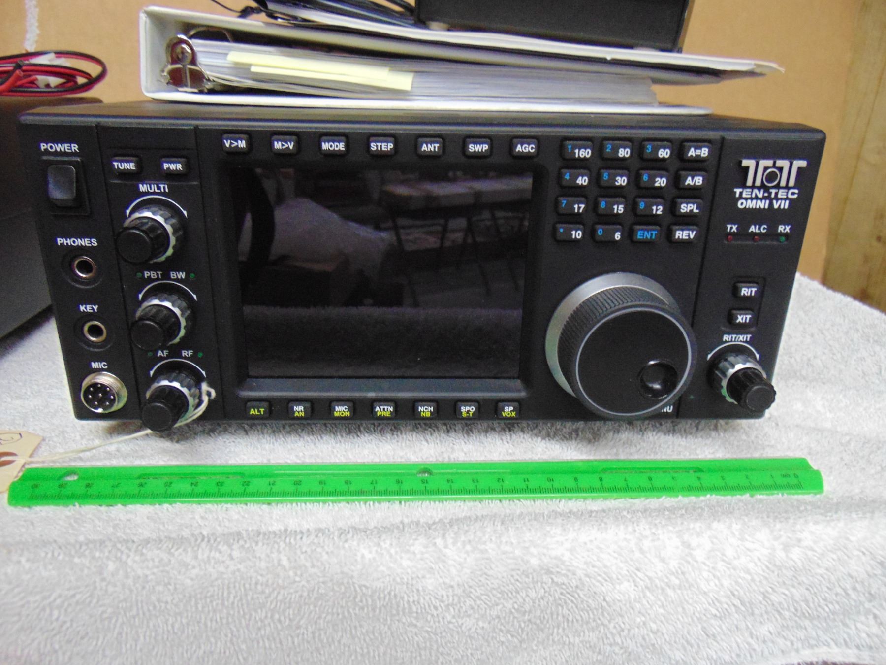 Ten Tec Omni-VII; also known as model 588 HF transceiver; includes remote speaker, remote tuning/keypad, manual; excellent, works