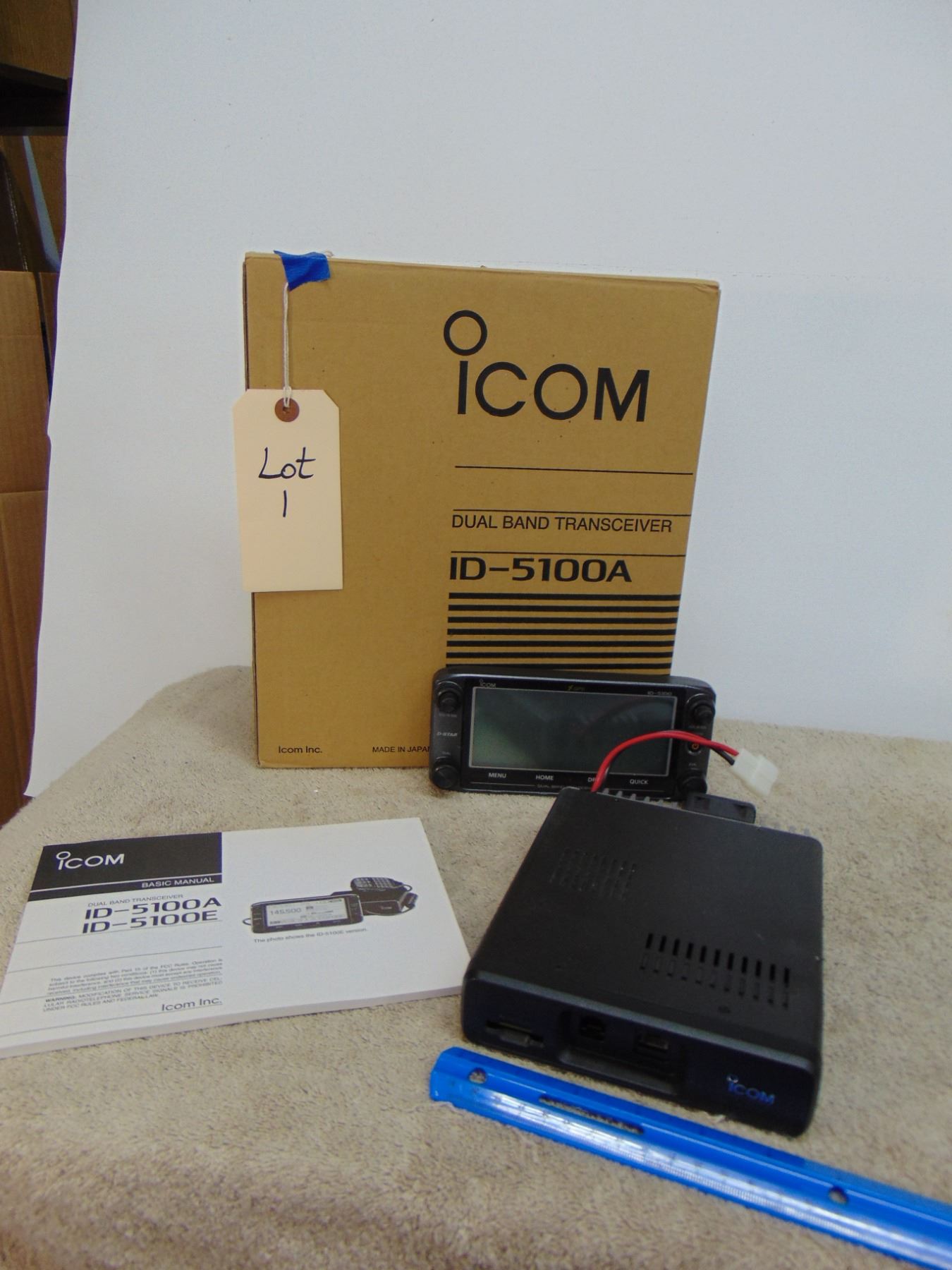 ICOM dual band UHF/VHF transceiver; model ID-5100A; missing microphone and remote head cable; works, used, but in original box