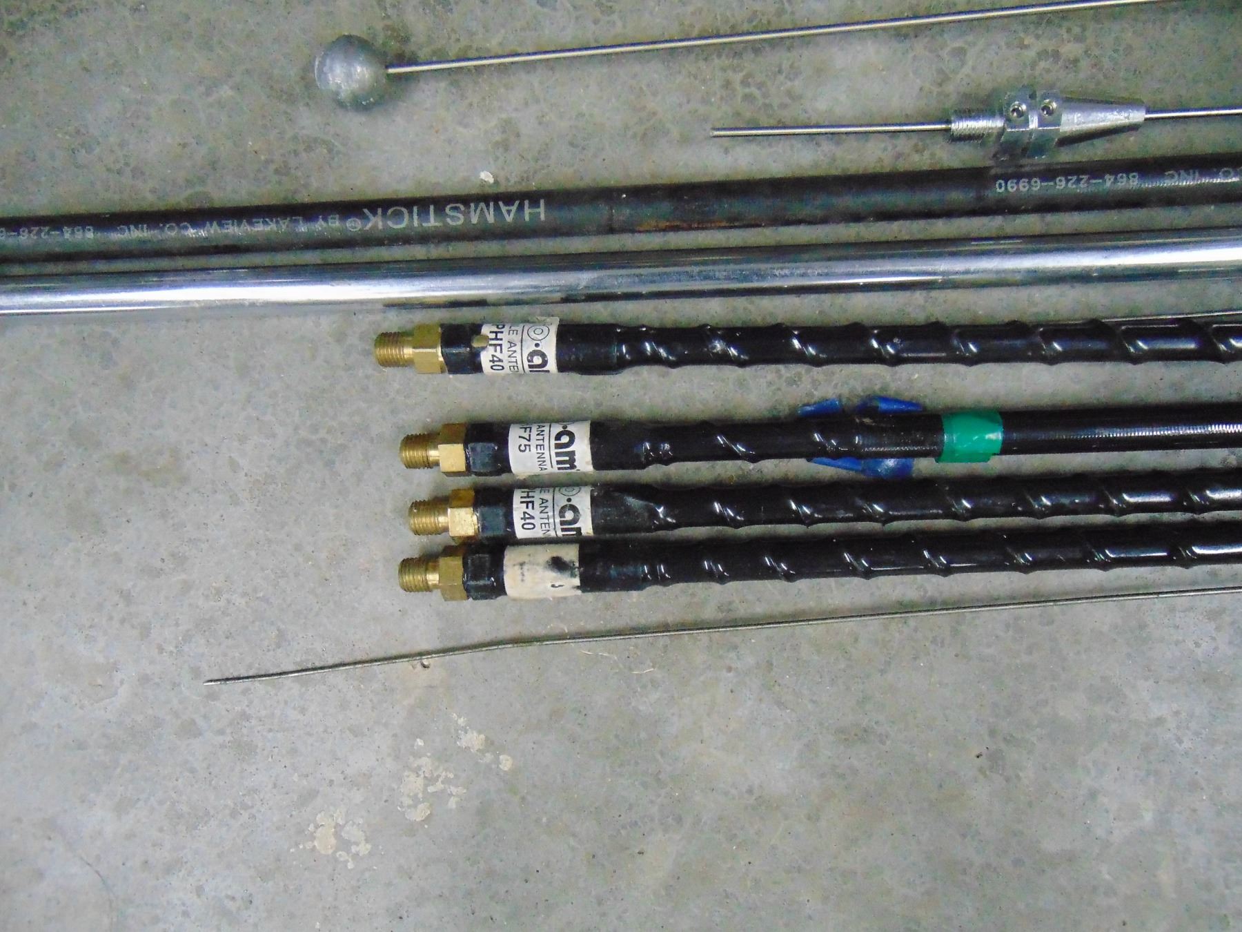 Numerous mobile antennas; includes Hustler and MFJ