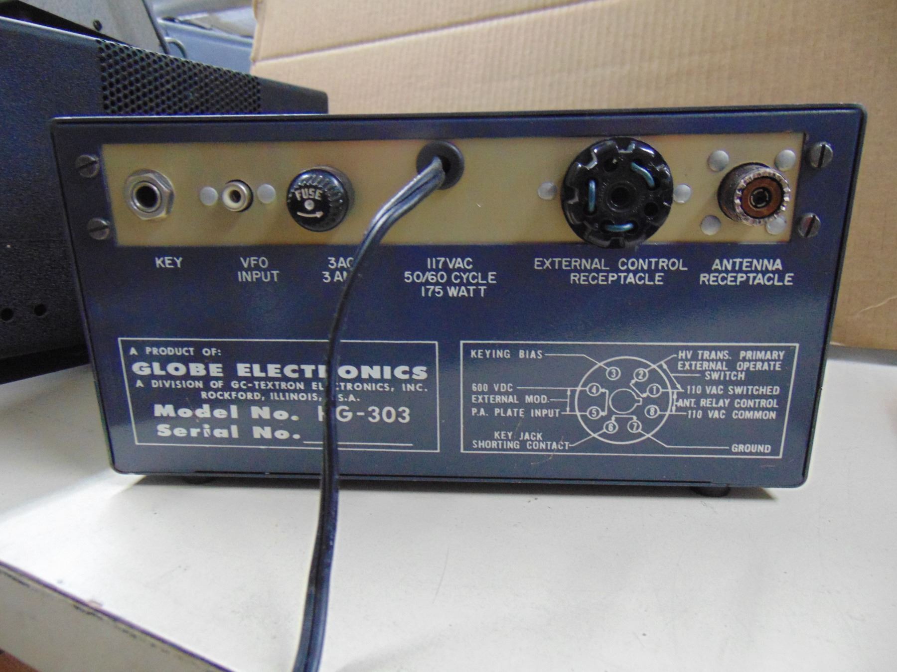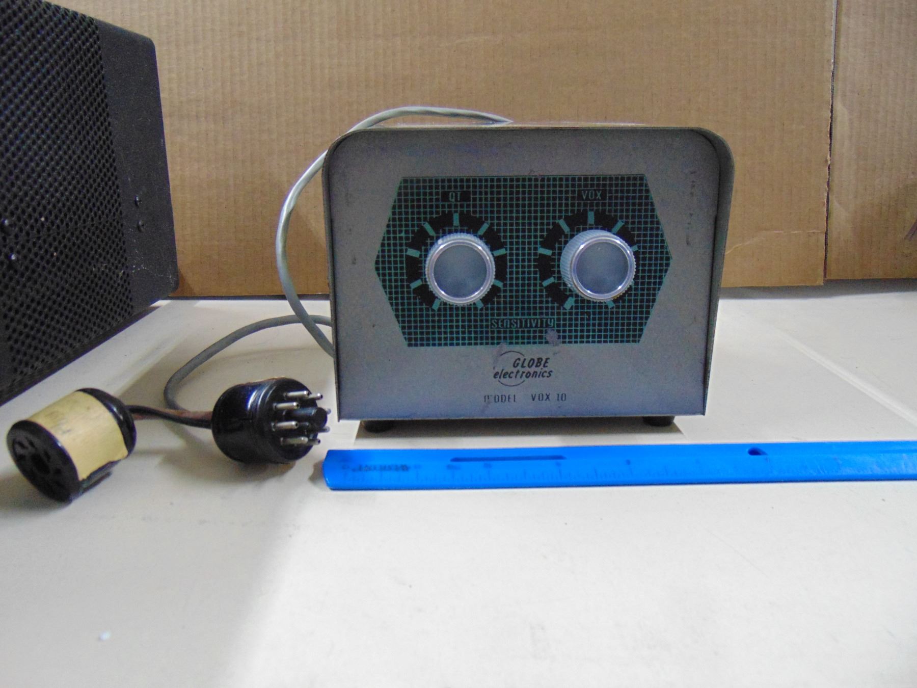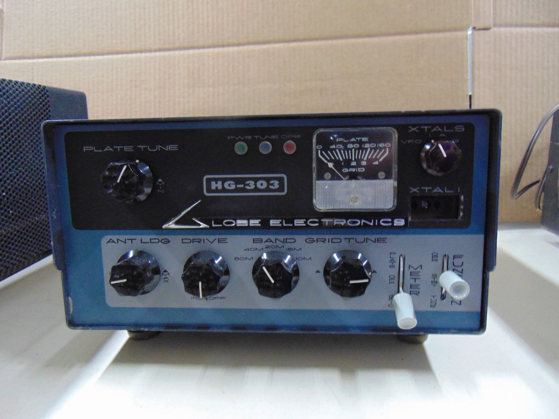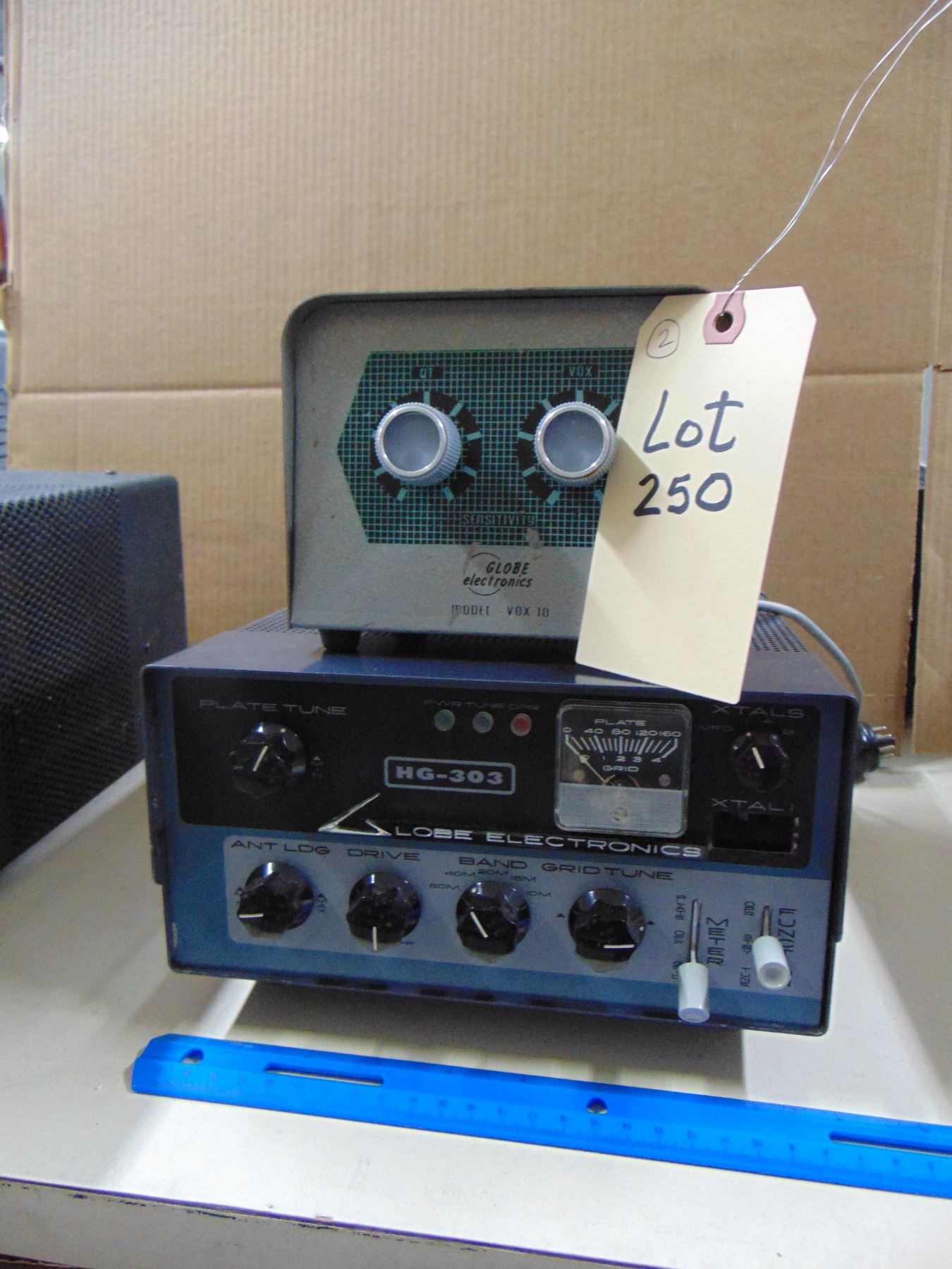 Two items: 1) Globe Electronics Vox 10; 2) Globe Electronics transmitter, model HG-303, crystal control 5 band