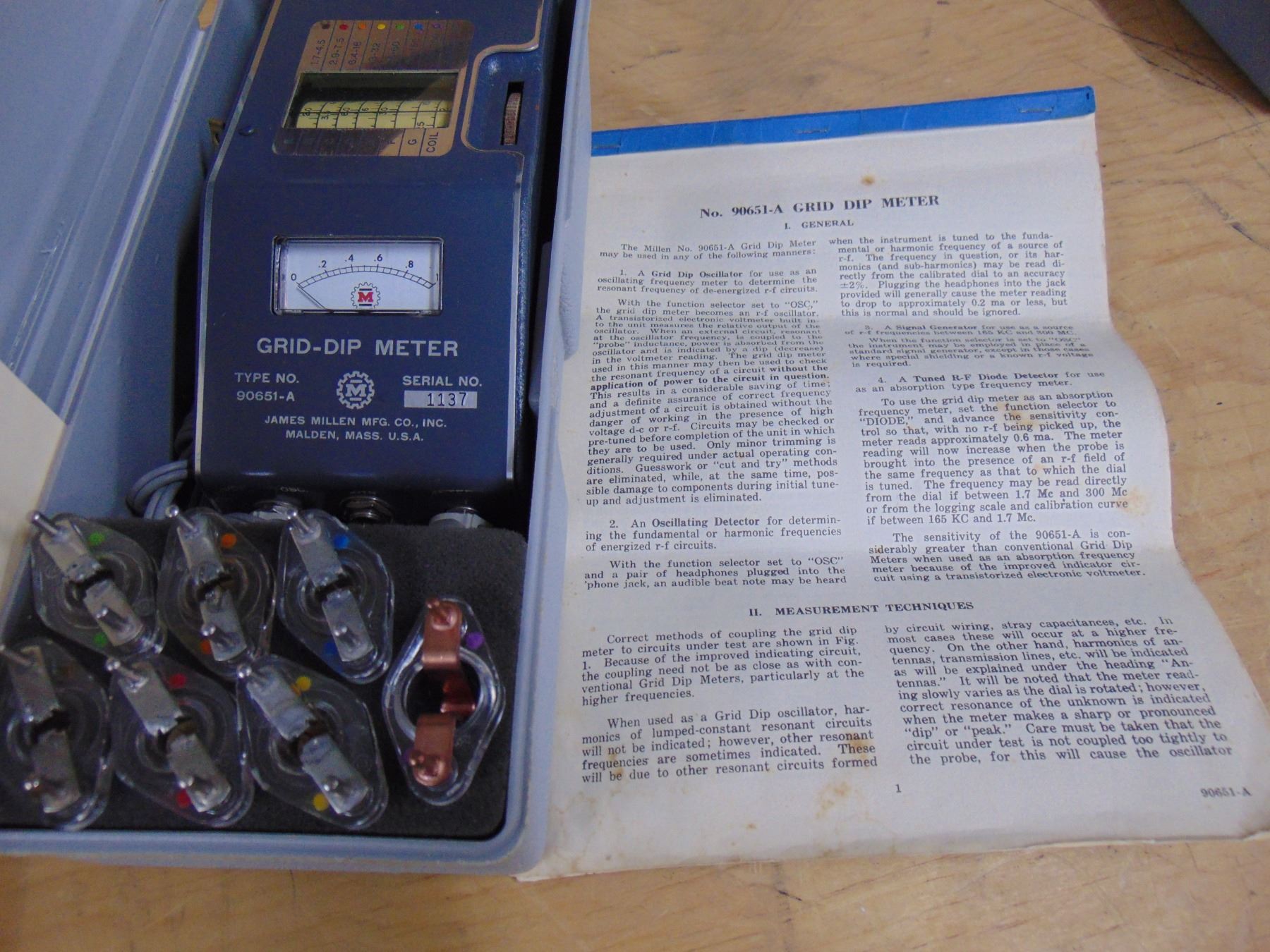 James Millen Mfg. Co. grid-dip meter; type 90651-A; with full set of coils in case; in excellent physical condition; untested; with manual