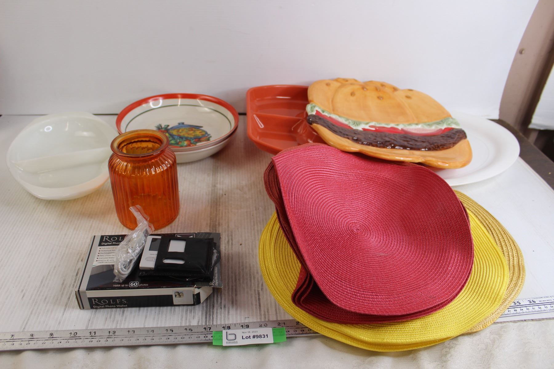 Hamburger Tray, (2) Bowls, Digital Photo Wallet, Misc.