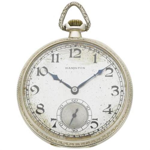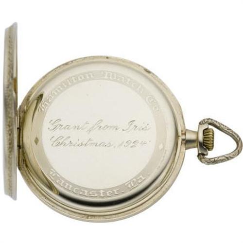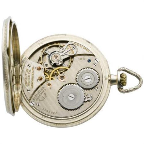 <B>Hamilton 14k grade 916 circa 1920</B></I> White gold double hinged back case. Silver dial with blue kite hands and Arabic numeral. Nickel 3/4 plate movement with gold jewel settings, straight line damaskeening. <BR><BR><b>Shipping:</b> Miscellaneous Collectibles, Smal (<a target="_blank" href="http://www.heritageauctions.com/common/shipping.php">view shipping information</a>