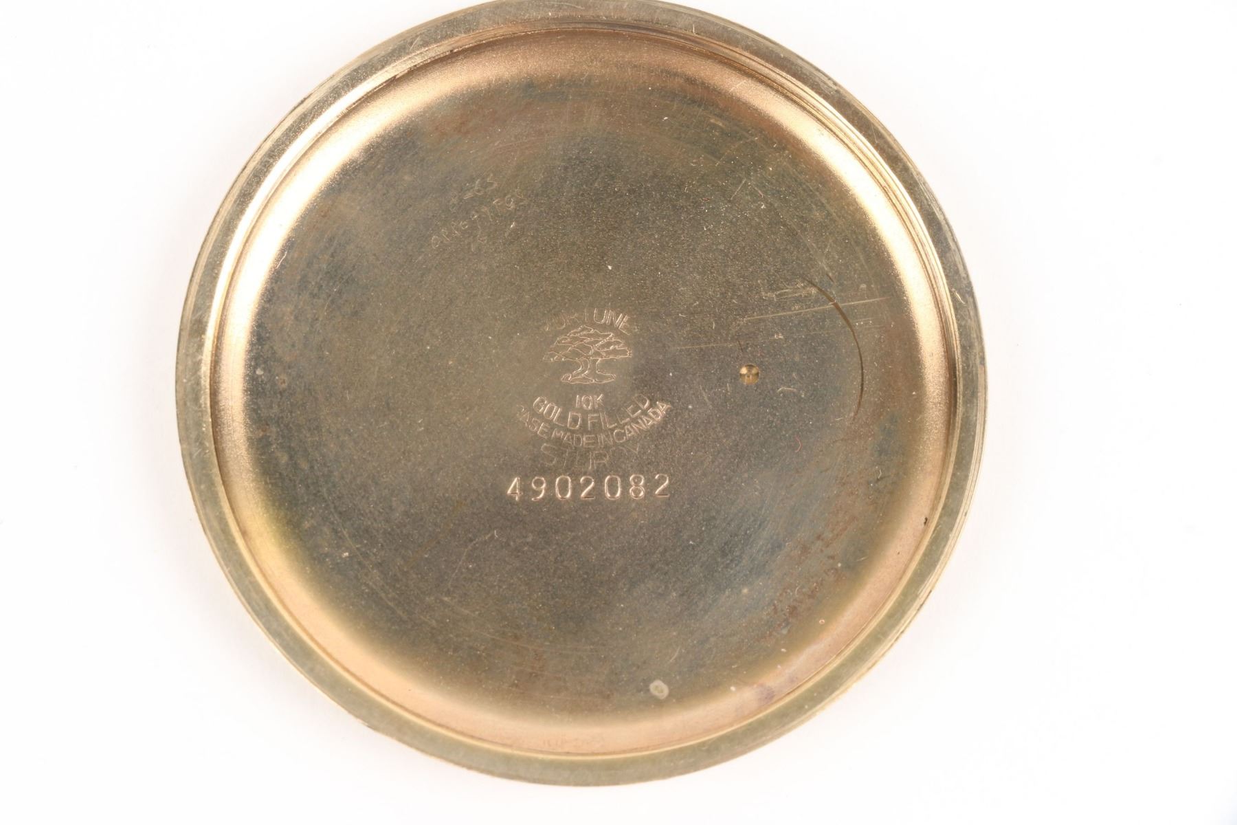 QUANTITY: 1. CASE MATERIAL: 10K Gold Filled. SIZE: 16 Size. GROSS WEIGHT: 104.9g . EST. $200-300. DISCLOSURE: Watches were running at time of photography unless otherwise stated. Service history is unknown unless paperwork is provided. We cannot guarantee accuracy of any of the watches offered.