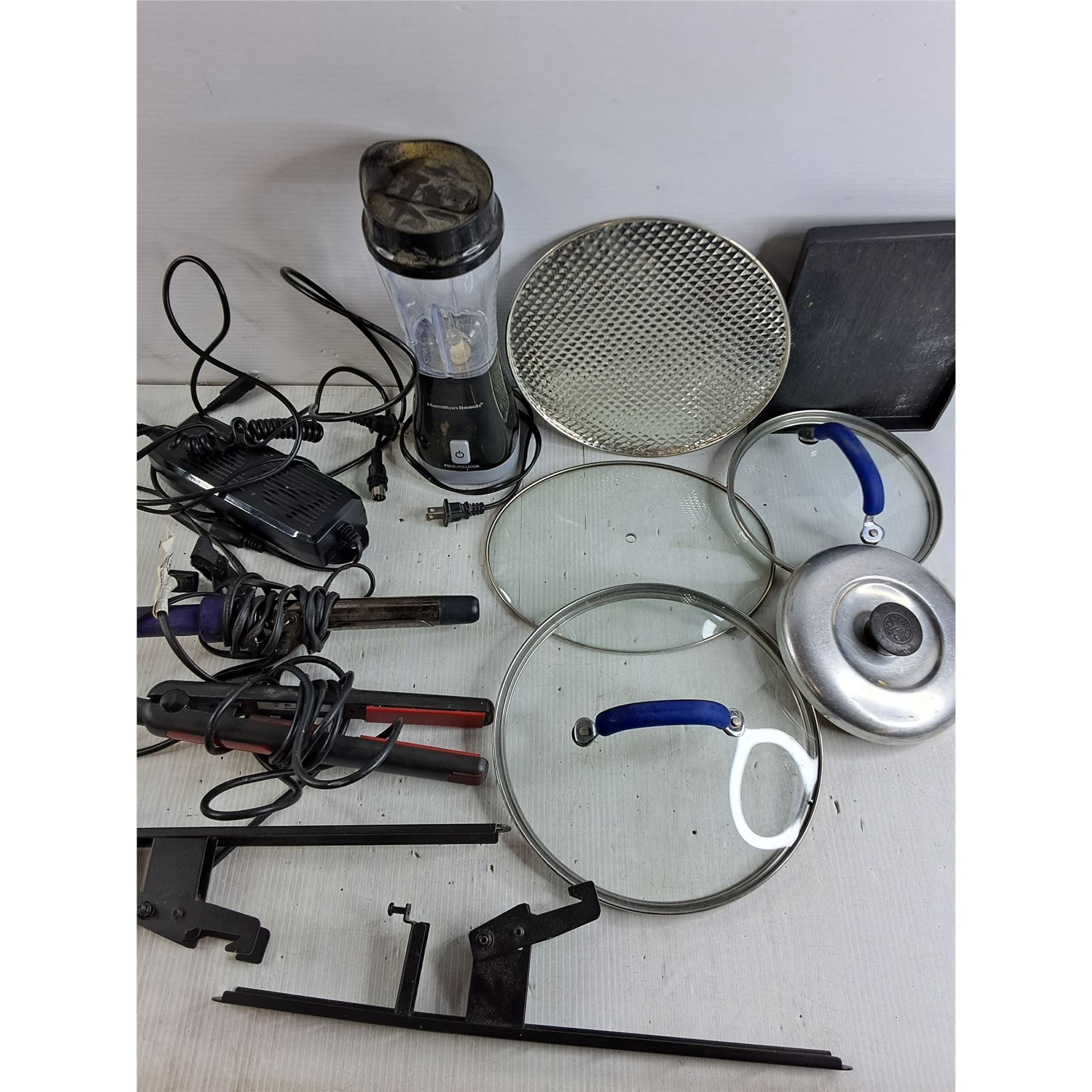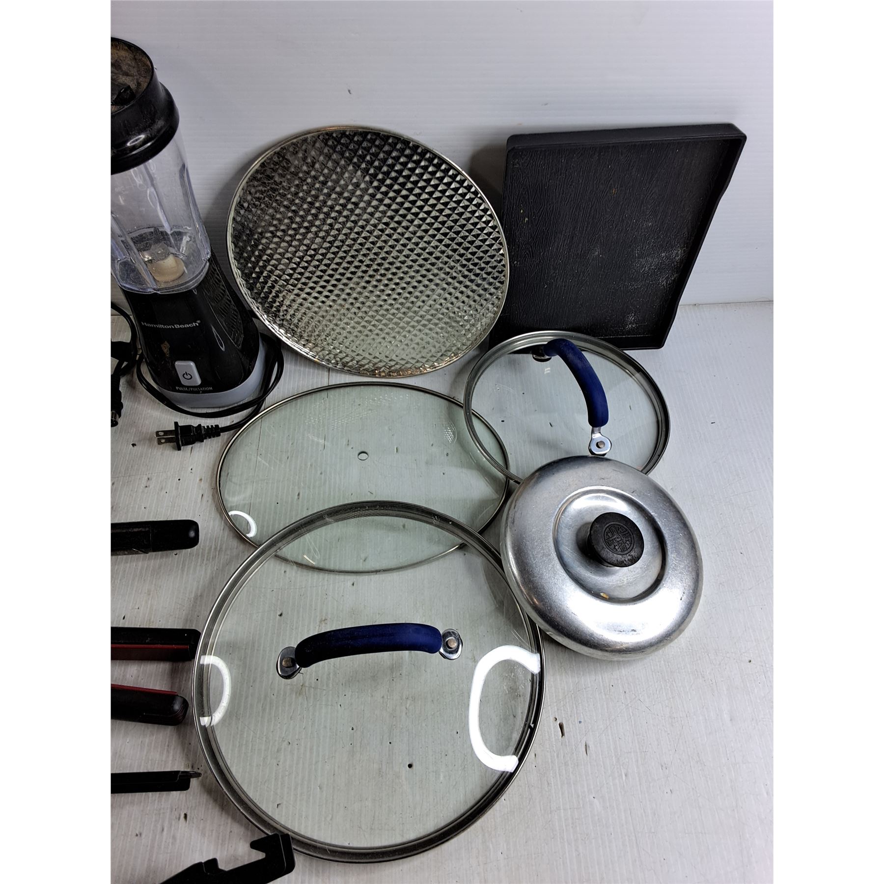 Hamilton Beach Blender, Hair Straighteners, Pot Lids, Tea Cup Tray, Misc, As Is