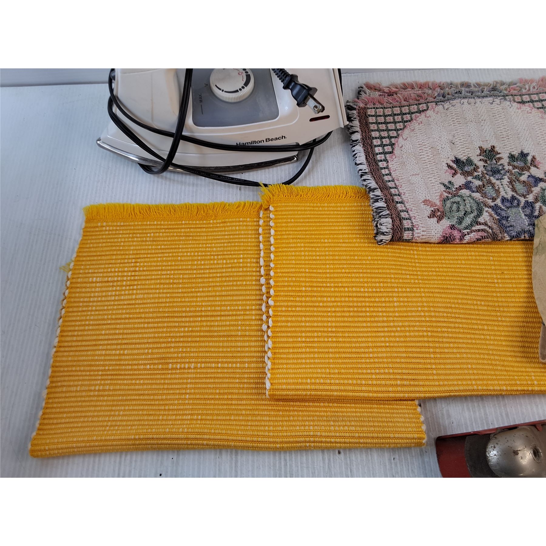 Hamilton Beach Electric Iron - Powers On, As Is, Table Cloth Mats, Vintage Small Wood Plane