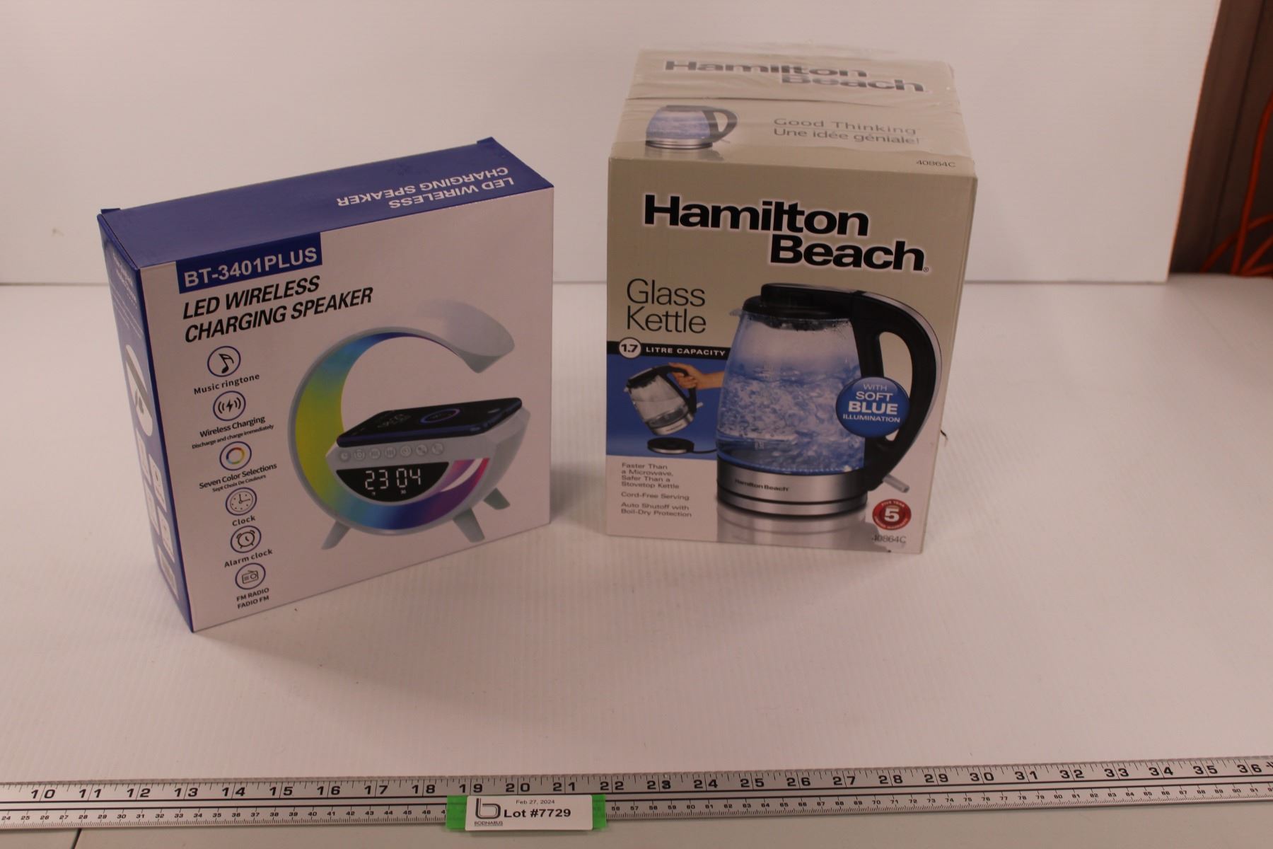 Hamilton Beach Glass Kettle (New in Box) & LED Wireless Charging Speaker (New in Box)