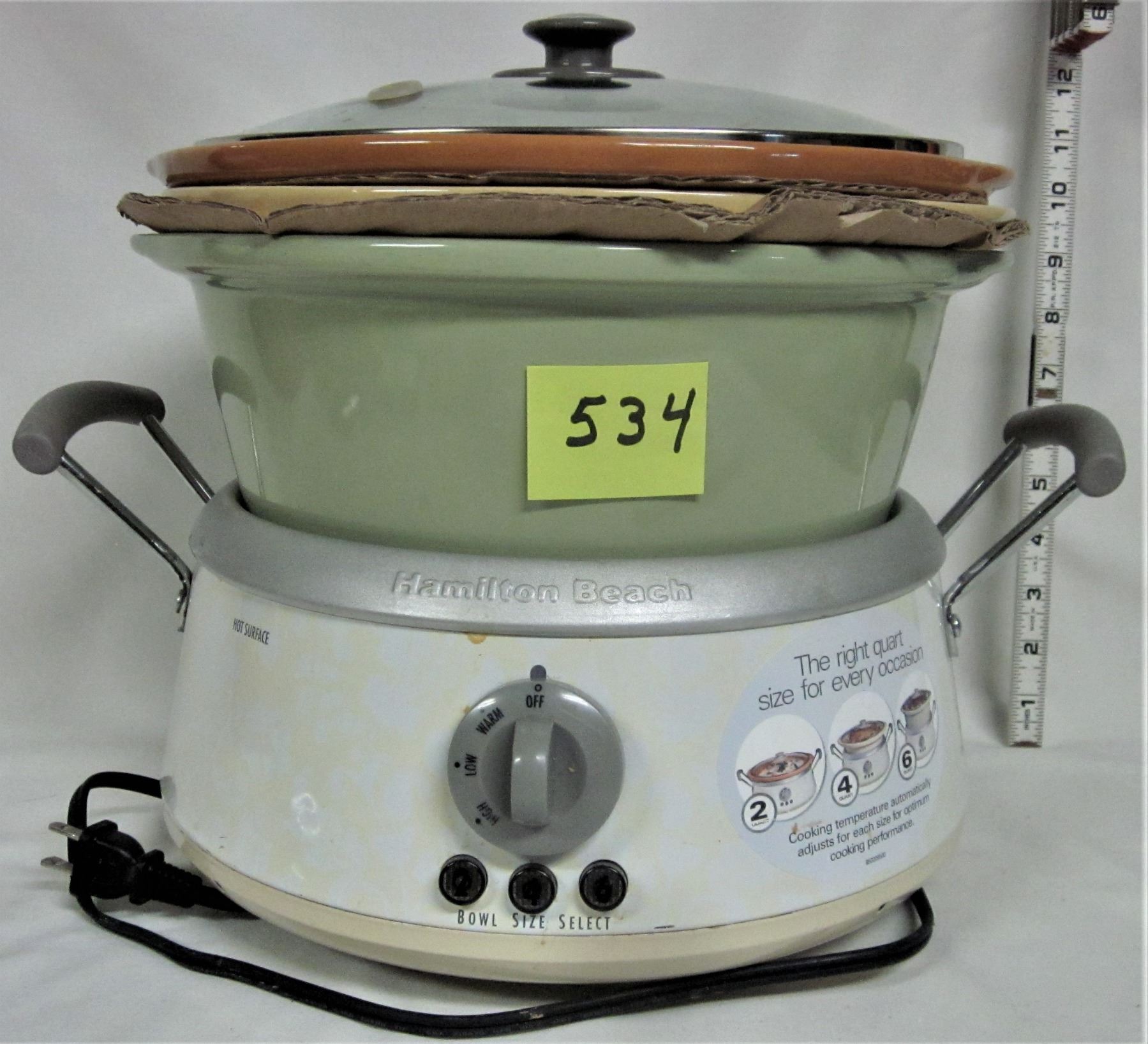 Hamilton Beach electric slow cooker comes with 2 quart, 4 quart, 6 quart ceramic pots