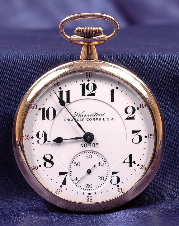 Hamilton, Engineer Corps USA Open Face Yellow Gold Filled Pocket Watch