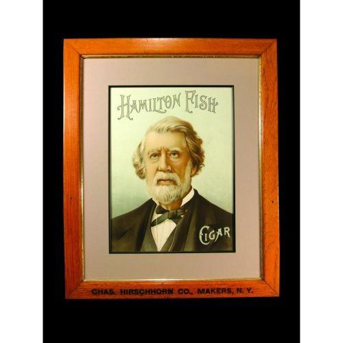 Hamilton Fish Cigar Paper Sign, Chas. Hirschhorn Co., makers N.Y. In original frame, Excellent condition. 25 X 30 1/2 inches overall.