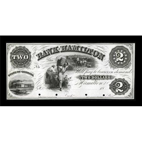 <B>Hamilton, GA- Bank of Hamilton</B></I> $2 UNL Proof<BR> A lovely ex-ABNCo sale Proof from a bank which is not even listed in the Haxby reference. <B>Uncirculated, </B></I>4 POC.<BR><I>From The Collection of a Louisiana Gentleman.</B></I><BR><BR><b>Shipping:</b> Coins & Currency (<a target="_blank" href="http://www.heritageauctions.com/common/shipping.php">view shipping information</a>)