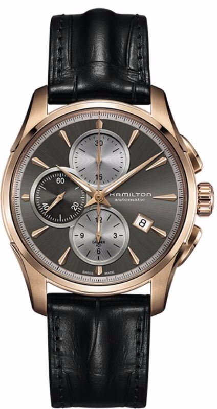Model: H32546781 - CASE = [Material:Rose Gold-Tone Stainless Steel], [Case Diameter:45], [Bezel:Fixed], [Case Back:Skeleton], [Water Resistant:100 Meters - 330 Feet], [Crystal:Scratch Resistant Sapphire],; DIAL = [Color:Grey],; MOVEMENT = [Type:Automatic chronograph], [Crown:Push In],; BAND = [Clasp:Tang], [Type:Black Alligator Leather], (Usually ships in 1 to 2 business days.)