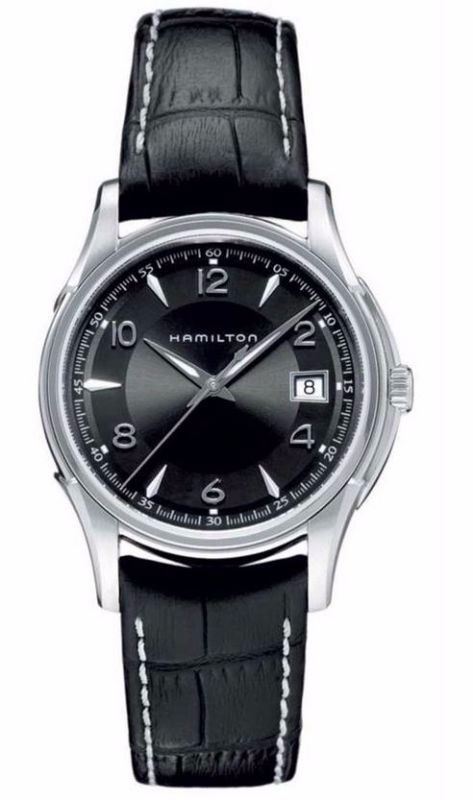 Model: H32411735 - CASE = [Material:Stainless Steel], [Case Diameter:38], [Bezel:Fixed], [Case Back:Solid], [Water Resistant:50 Meters - 165 Feet], [Crystal:Scratch Resistant Sapphire],; DIAL = [Color:Black],; MOVEMENT = [Type:Quartz], [Crown:Push In],; BAND = [Clasp:Tang], [Type:Black Alligator Leather], (Usually ships in 2 to 4 weeks.)