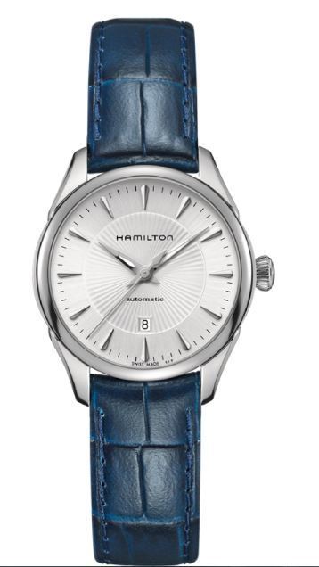 Model: H42215651 - CASE = [Material:Stainless Steel], [Case Diameter:30], [Bezel:Fixed], [Case Back:Skeleton], [Water Resistant:50 Meters - 165 Feet], [Crystal:Scratch Resistant Sapphire], DIAL = [Color:Silver], MOVEMENT = [Type:Automatic], [Crown:Push In], BAND = [Clasp:Tang], [Type:Blue Alligator Leather], (Usually ships in 2 to 4 weeks.)