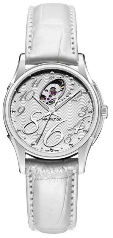 Model: H32465953 - CASE = [Material:Stainless Steel], [Case Diameter:30], [Bezel:Fixed], [Case Back:Solid], [Water Resistant:50 Meters - 165 Feet], [Crystal:Scratch Resistant Sapphire], DIAL = [Color:Silver], MOVEMENT = [Type:Quartz], [Crown:Push In], BAND = [Clasp:Tang], [Type:Blue Alligator Leather], (Usually ships in 2 to 4 weeks.)