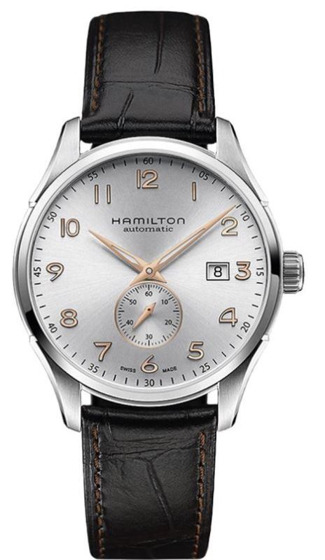 Model: H42515555 - CASE = [Material:Stainless Steel], [Case Diameter:40], [Bezel:Fixed], [Case Back:Skeleton], [Water Resistant:50 Meters - 165 Feet], [Crystal:Scratch Resistant Sapphire],; DIAL = [Color:Silver],; MOVEMENT = [Type:Automatic Small Second], [Crown:Push In],; BAND = [Clasp:Tang], [Type:Black Alligator Leather], (Usually ships in 1 to 2 business days.)