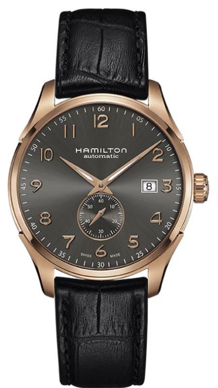 Model: H42575783 - CASE = [Material:Rose Gold-Tone Stainless Steel], [Case Diameter:40], [Bezel:Fixed], [Case Back:Skeleton], [Water Resistant:50 Meters - 165 Feet], [Crystal:Scratch Resistant Sapphire], DIAL = [Color:Grey], MOVEMENT = [Type:Automatic Small Second], [Crown:Push In], BAND = [Clasp:Tang], [Type:Black Alligator Leather], (Usually ships in 1 to 2 business days.)