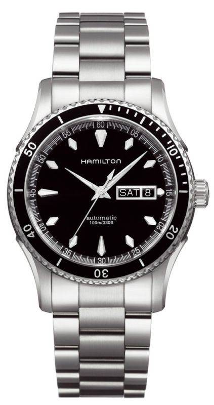 Model: H37565131 - CASE = [Material:Polished with Brushed Stainless Steel], [Case Diameter:42], [Water Resistant:100 Meters / 330 Feet], [Crystal:Scratch Resistant Sapphire], DIAL = [Color:Black], MOVEMENT = [Type:Automatic Self Winding], BAND = [Clasp:Deployment], [Type:Polished with Brushed Stainless Steel], (Usually ships in 4 to 8 weeks.)