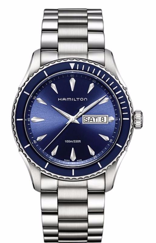 Model: H37551141 - CASE = [Material:Stainless Steel], [Case Diameter:42], [Bezel:Fixed], [Case Back:Solid], [Water Resistant:50 Meters - 165 Feet], [Crystal:Scratch Resistant Sapphire],; DIAL = [Color:Blue],; MOVEMENT = [Type:Quartz], [Crown:Push In],; BAND = [Clasp:Foldover], [Type:Stainless Steel], (Usually ships in 2 to 4 weeks.)