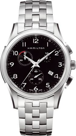 Model: H38612133 - CASE = [Material:Polished with Brushed Stainless Steel], [Case Diameter:43], [Water Resistant:50 Meters / 165 Feet], [Crystal:Scratch Resistant Sapphire], DIAL = [Color:Black], MOVEMENT = [Type:Battery Powered Quartz], BAND = [Clasp:Deployment], [Type:Polished with Brushed Stainless Steel], (Usually ships in 1 to 2 business days.)