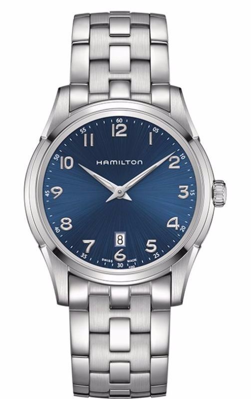 Model: H38511143 - CASE = [Material:Stainless Steel], [Case Diameter:42], [Bezel:Fixed], [Case Back:Solid], [Water Resistant:50 Meters - 165 Feet], [Crystal:Scratch Resistant Sapphire],; DIAL = [Color:Blue],; MOVEMENT = [Type:Quartz], [Crown:Push In],; BAND = [Clasp:Foldover], [Type:Stainless Steel], (Usually ships in 1 to 2 business days.)