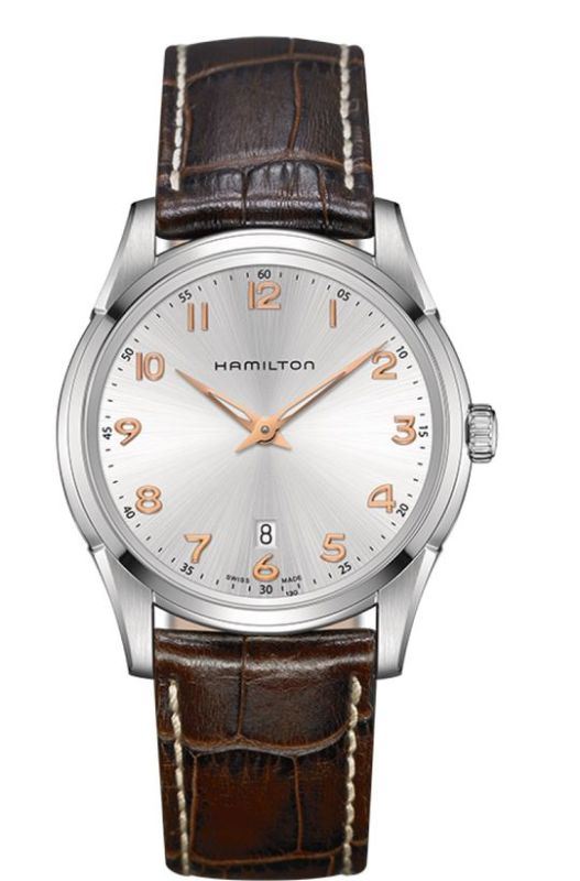 Model: H38511513 - CASE = [Material:Stainless Steel], [Case Diameter:42], [Bezel:Fixed], [Case Back:Solid], [Water Resistant:50 Meters - 165 Feet], [Crystal:Scratch Resistant Sapphire], DIAL = [Color:Silver], MOVEMENT = [Type:Quartz], [Crown:Push In], BAND = [Clasp:Tang], [Type:Brown Alligator Leather], (Usually ships in 1 to 2 business days.)