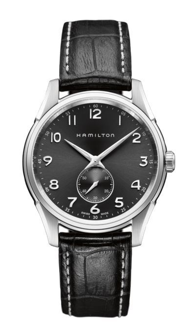 Model: H38411783 - CASE = [Material:Stainless Steel], [Case Diameter:40], [Case Thickness:7mm], [Bezel:Fixed], [Case Back:Solid], [Water Resistant:50 Meters - 165 Feet], [Crystal:Scratch Resistant Sapphire], DIAL = [Color:Grey], MOVEMENT = [Type:Quartz], [Crown:Push In], BAND = [Clasp:Tang], [Type:Black Alligator Leather], (Usually ships in 2 to 4 weeks.)
