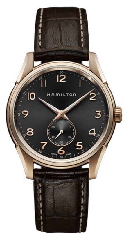 Model: H38441583 - CASE = [Material:Rose Gold-Tone Stainless Steel], [Case Diameter:42], [Case Thickness:12mm], [Bezel:Fixed], [Case Back:Solid], [Water Resistant:50 Meters - 165 Feet], [Crystal:Scratch Resistant Sapphire], DIAL = [Color:Grey], MOVEMENT = [Type:Quartz], [Crown:Push In], BAND = [Clasp:Tang], [Type:Brown Alligator Leather], (Usually ships in 2 to 4 weeks.)