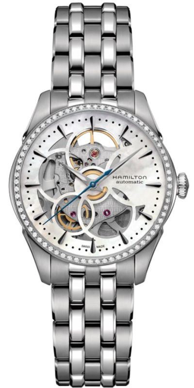 Model: H42405191 - CASE = [Material:Stainless Steel], [Case Diameter:36], [Bezel:Fixed With Diamonds], [Case Back:Skeleton], [Water Resistant:50 Meters - 165 Feet], [Crystal:Scratch Resistant Sapphire], DIAL = [Color:Skeleton], MOVEMENT = [Type:Automatic], [Crown:Push In], BAND = [Clasp:Deployment], [Type:Stainless Steel], (Usually ships in 2 to 4 weeks.)