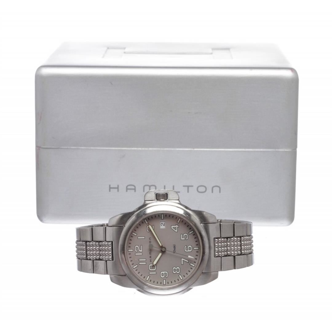 Hamilton Khaki 6309 20mm x 210mm stainless steel silver tone watch. Item is pre-owned.