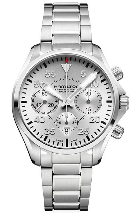 Model: H64666155 - CASE = [Material:Polished with Brushed Stainless Steel], [Case Diameter:42], [Case Back:See-thru Sapphire crystal], [Water Resistant:200 Meters / 660 Feet], [Crystal:Scratch Resistant Sapphire], DIAL = [Color:Silver Chronograph], MOVEMENT = [Type:Automatic Self Winding], BAND = [Clasp:Deployment], [Type:Polished with Brushed Stainless Steel], (Usually ships in 4 to 8 weeks.)