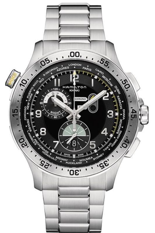Model: H76714135 - CASE = [Material:Stainless Steel], [Case Diameter:45], [Bezel:Uni-Directional Rotating], [Water Resistant:100 Meters - 330 Feet], [Crystal:Scratch Resistant Sapphire],; DIAL = [Color:Black],; MOVEMENT = [Type:Quartz Chronograph], [Crown:Push In],; BAND = [Clasp:Foldover], [Type:Stainless Steel], (Usually ships in 2 to 4 weeks.)