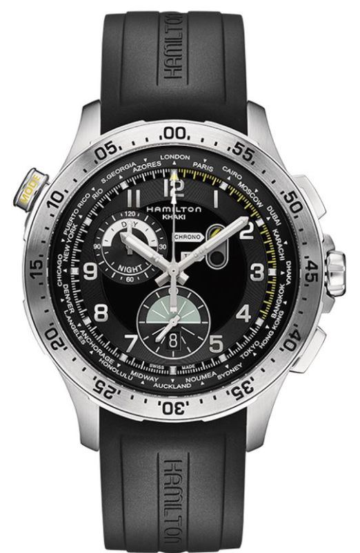 Model: H76714335 - CASE = [Material:Stainless Steel], [Case Diameter:45], [Bezel:Uni-Directional Rotating], [Water Resistant:100 Meters - 330 Feet], [Crystal:Scratch Resistant Sapphire], DIAL = [Color:Black], MOVEMENT = [Type:Quartz Chronograph], [Crown:Push In], BAND = [Clasp:Tang], [Type:Black Rubber], (Usually ships in 2 to 4 weeks.)