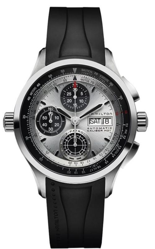 Model: H76566351 - CASE = [Material:Stainless Steel], [Case Diameter:42], [Bezel:Fixed], [Case Back:Skeleton], [Water Resistant:100 Meters - 330 Feet], [Crystal:Scratch Resistant Sapphire],; DIAL = [Color:White],; MOVEMENT = [Type:Automatic Chronograph], [Crown:Screw Down],; BAND = [Clasp:Tang], [Type:Black Rubber], (Usually ships in 2 to 4 weeks.)
