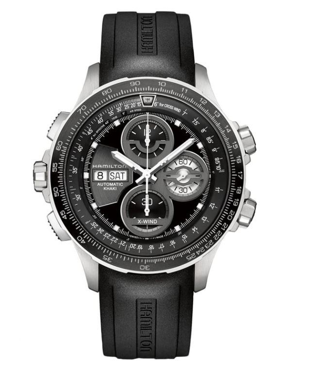 Model: H77766331 - CASE = [Material:Stainless Steel], [Case Diameter:45], [Case Thickness:16mm], [Bezel:Bi-Directional], [Case Back:Skeleton], [Water Resistant:100 Meters - 330 Feet], [Crystal:Scratch Resistant Sapphire], DIAL = [Color:Black], MOVEMENT = [Type:Automatic chronograph], [Crown:Screw Down], BAND = [Clasp:Tang], [Type:Black Rubber], (Usually ships in 2 to 4 weeks.)