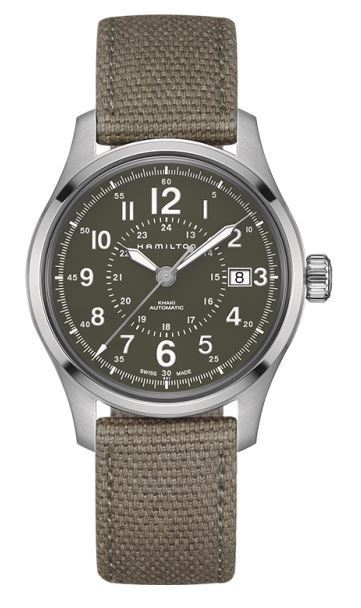 Model: H70595963 - CASE = [Material:Stainless Steel], [Case Diameter:40], [Case Thickness:11mm], [Bezel:Fixed], [Case Back:Skeleton], [Water Resistant:100 Meters - 330 Feet], [Crystal:Scratch Resistant Sapphire], DIAL = [Color:Green], MOVEMENT = [Type:Automatic], BAND = [Clasp:Tang], [Type:Grren Canvas], (Usually ships in 2 to 4 weeks.)