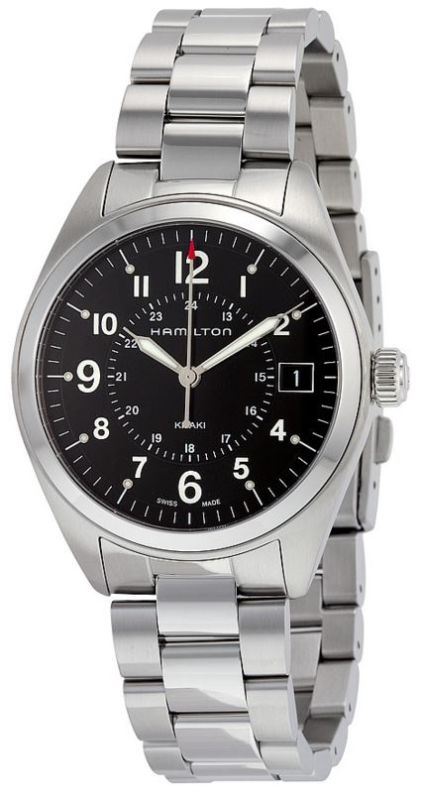 Model: H68551933 - CASE = [Material:Stainless Steel], [Case Diameter:40], [Case Thickness:9mm], [Bezel:Fixed], [Case Back:Solid], [Water Resistant:50 Meters - 165 Feet], [Crystal:Scratch Resistant Sapphire Crystal], DIAL = [Color:Black], MOVEMENT = [Type:Quartz], [Crown:Push In], BAND = [Clasp:Deployment], [Type:Stainless Steel], (Usually ships in 1 to 2 business days.)