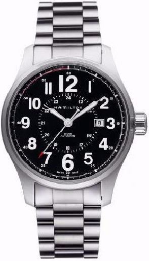 Model: H70615133 - CASE = [Material:Polished with Brushed Stainless Steel], [Case Diameter:44], [Water Resistant:100 Meters / 330 Feet], [Crystal:Scratch Resistant Sapphire],; DIAL = [Color:Black],; MOVEMENT = [Type:Automatic Self Winding],; BAND = [Clasp:Deployment], [Type:Polished with Brushed Stainless Steel], (Usually ships in 4 to 8 weeks.)