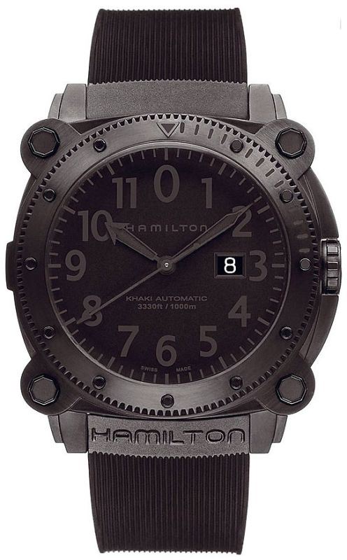 Model: H78585333 - CASE = [Material:Black PVD Steel], [Case Diameter:46], [Water Resistant:1000 Meters / 3330 Feet], [Crystal:Scratch Resistant Sapphire], DIAL = [Color:Black], MOVEMENT = [Type:Automatic Self Winding], BAND = [Clasp:Tang], [Type:Black Rubber], (Usually ships in 1 to 2 weeks.)