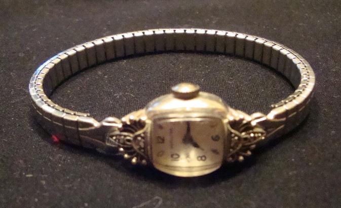 Non-working ladies Hamilton 14k white gold watch with small diamond chips